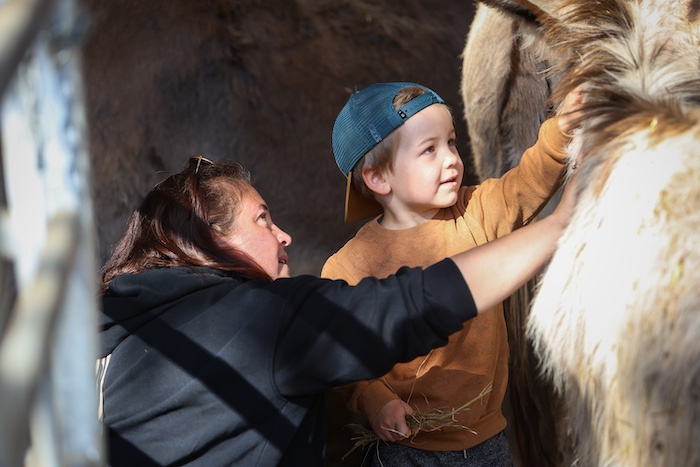 Les alpagas aiment la neige et ne craignent pas le froid. Ils sont très doux, autant par leur caractère que par leur laine, et font de parfaits compagnons de balade. Les enfants ne montent pas sur le dos des alpagas mais les accompagnent en balade en les tenant à la longe.
