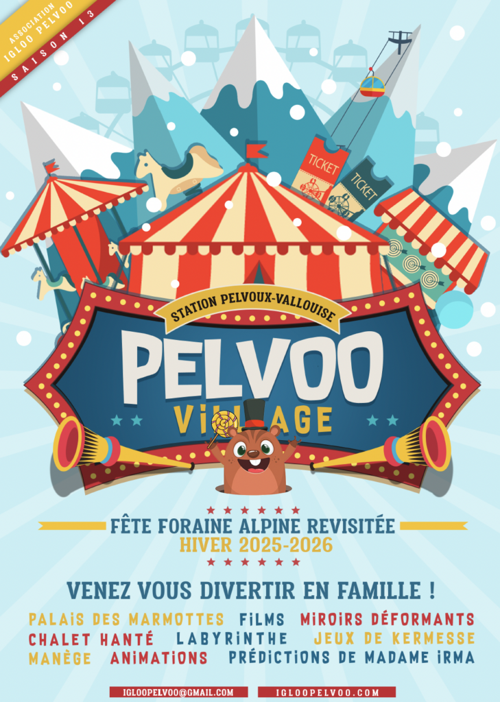 Du côté de Pelvoux-Vallouise, Igloo Pelvoo devient Pelvoo Village, une fête foraine de montagne entièrement réinventée. Attractions sous dômes (manège enchanté, miroirs déformants, labyrinthe, palais des marmottes, cinéma, la caravane d’Irma, espace virtuel…), stands de jeux, animaux, douceurs sucrées et surprises rythment cette expérience magique, entre esprit montagnard et humour décalé.